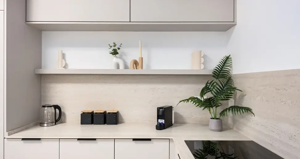 הסלון בדירה מעוצב בסגנון מודרני ומכיל ספה מפנקת המאפשרת חלל מנוחה אידיאלי. לצד הסלון ממוקמת פינת אוכל המזמינה לארוחות משותפות. המטבח מאובזר במקרר, תנור, מיקרוגל, קומקום, מצנם ומכונת קפה ומאפשר הכנת ארוחות בנוחות מלאה.